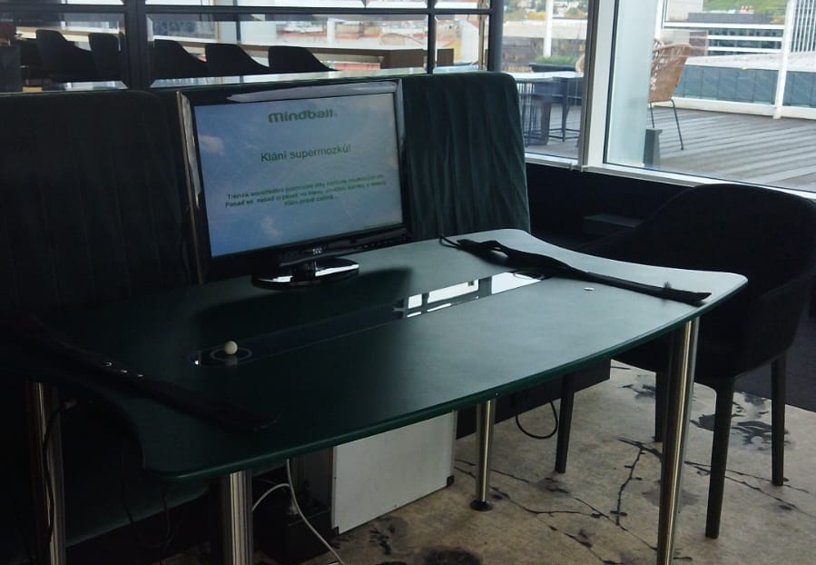 Mindball je fascinující stolní hra pro dvě osoby, jejímž cílem je dostat kuličku ze středu hřiště do soupeřova prostoru. Vše závisí na schopnostech relaxace a koncentrace mozku hráčů. Mindball není jen obyčejný přístroj, který umí změřit mozkovou činnost. Je to nový druh aktivity, při kterém člověk posiluje svůj mozek. Díky tréninku je totiž možné zlepšit své schopnosti koncentrace. Hráči mají na hlavě připevněny čelenky s biosenzory, které jsou připojeny k hracímu stolu a které vyhodnocují činnost mozku. Na základě zpracovaných údajů se na stole pohybuje míček podle toho, kdo jakou mozkovou aktivitu vyvíjí. Zpracované informace jsou také zobrazovány na monitoru. Netradiční aktivita, která vzbuzuje zaslouženou pozornost na každí akci. Na sportovní eventy můžeme využít i fotbalovou úpravu této produkce pod názvem Myšlenkový fotbal.